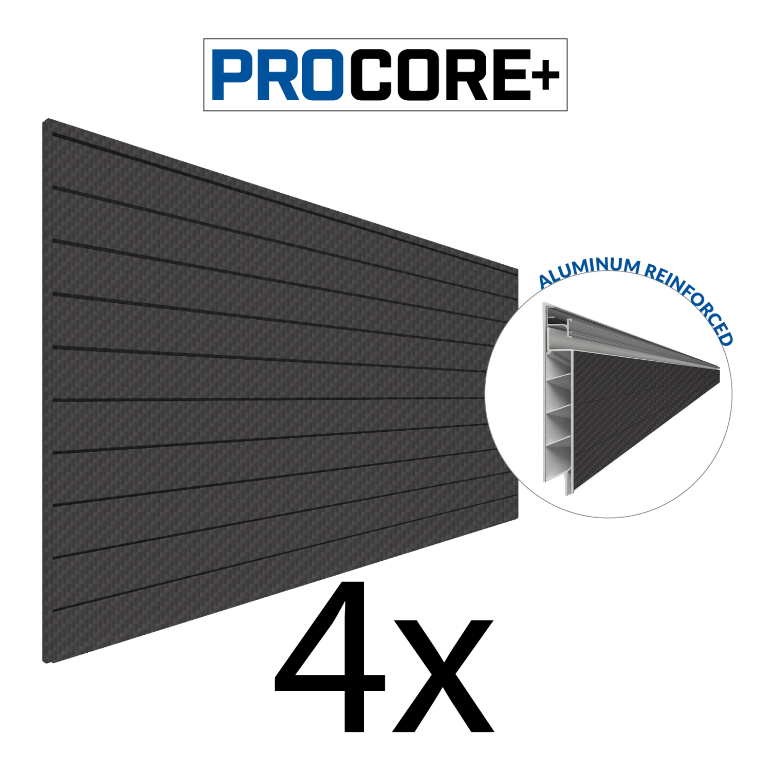 Introducing our PROCORE+ Carbon Fiber finish Slatwall. The PROCORE+ panel has all of the advantages of our PROCORE Slatwall and combines it with a gorgeous laminated carbon fiber finish.
