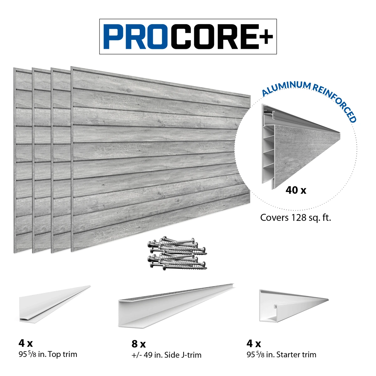 - Each 8 ft. x 4 ft. (32 sq. ft.) includes all required trims and hardware for installation