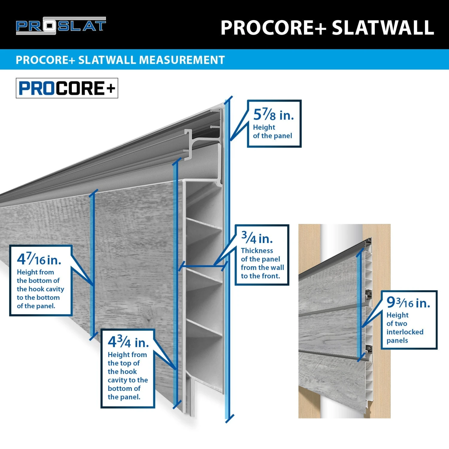 * PROCORE+ Slatwall and PROCORE+ trims cannot be installed in conjunction with the original PVC Slatwall.
