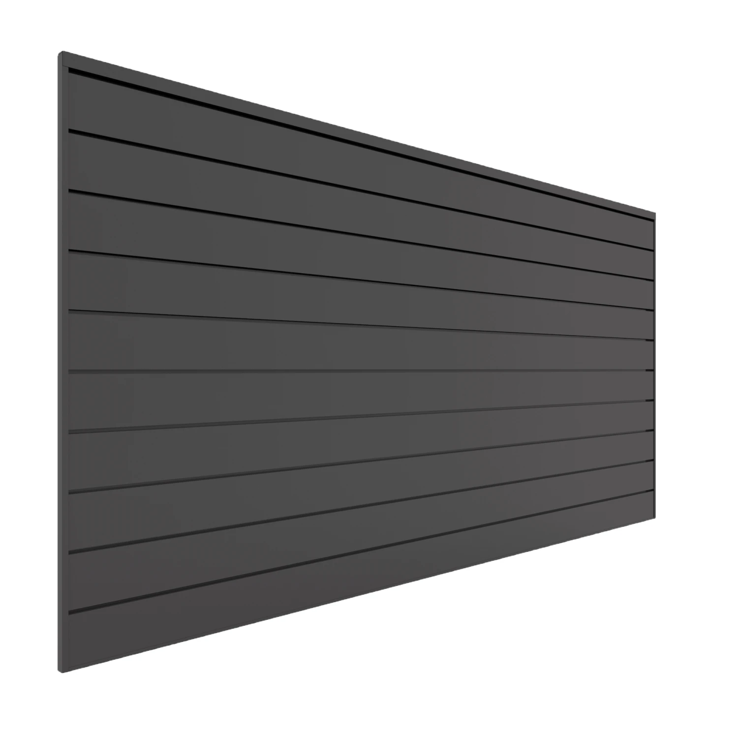 Proslat Slatwall Panels are built  STRONG – Panels can hold up to 75 lb per sq.ft and are guaranteed for life.  DURABLE – Unlike wood slatwall, our high density PVC slatwall is resistant to moisture.  VERSATILE  –  Proslat Slatwall is one of the most versatile, as individual panels may be installed as a track, in a section or over an entire wall.  EASY – Installation is simple and the unique hidden screw design yields a professional finish.  COMPLETE – All trims and mounting screws are included in the box.  GREEN – Made of  90% recycled materials, makes us one of the greenest storage solutions on the market.  MADE HERE  –  Our Slatwall is proudly made in North America. GUARANTEED – Our slatwall panels come with a no-hassle lifetime warranty.Â