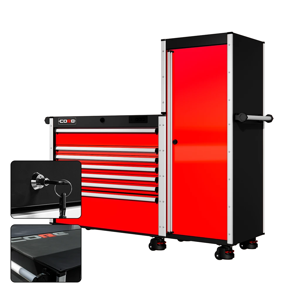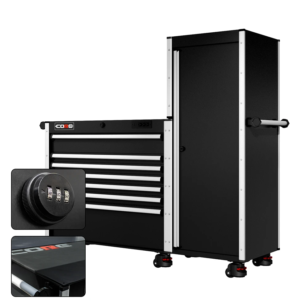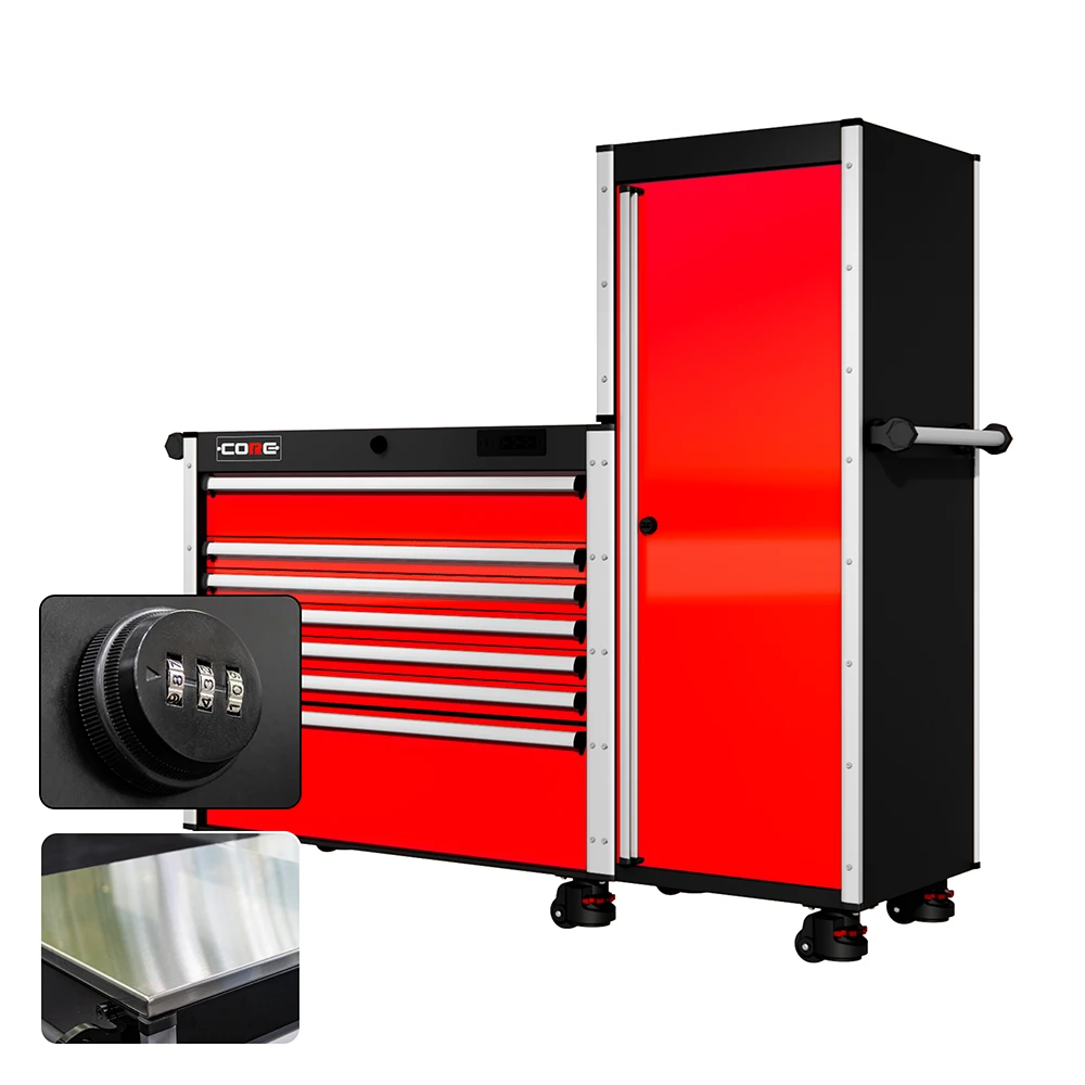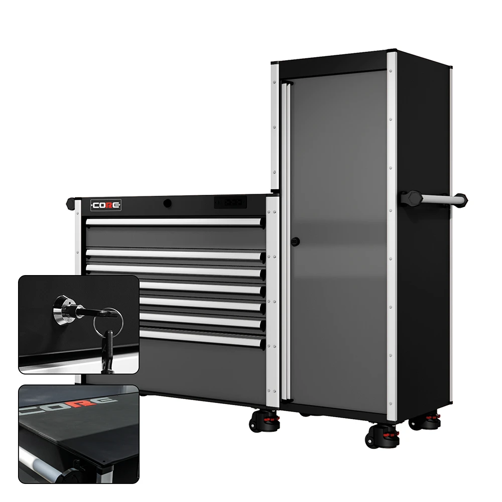 66 Series – 7 Drawers And Tall Locker – Silver Handles – Foot Casters