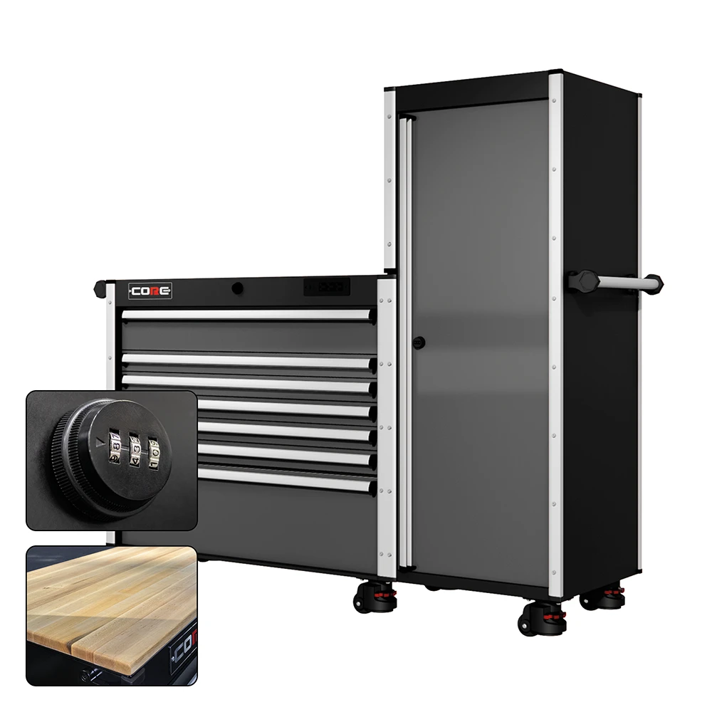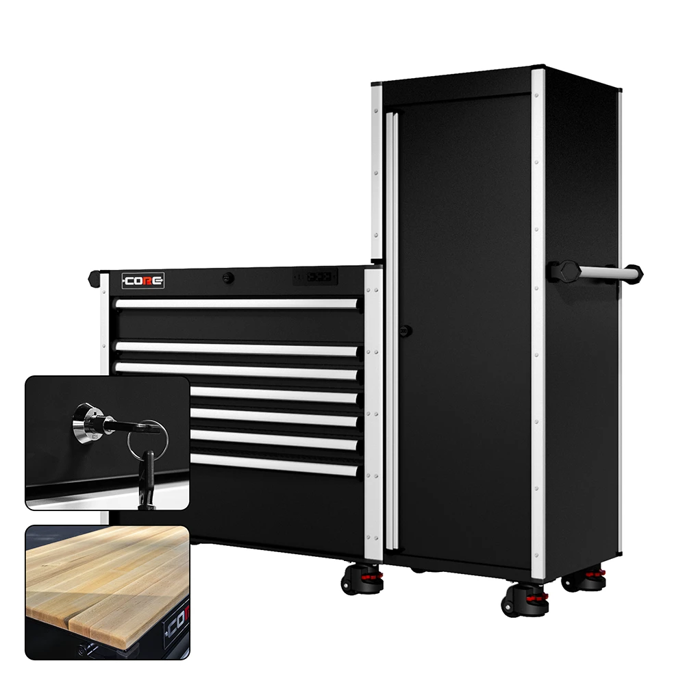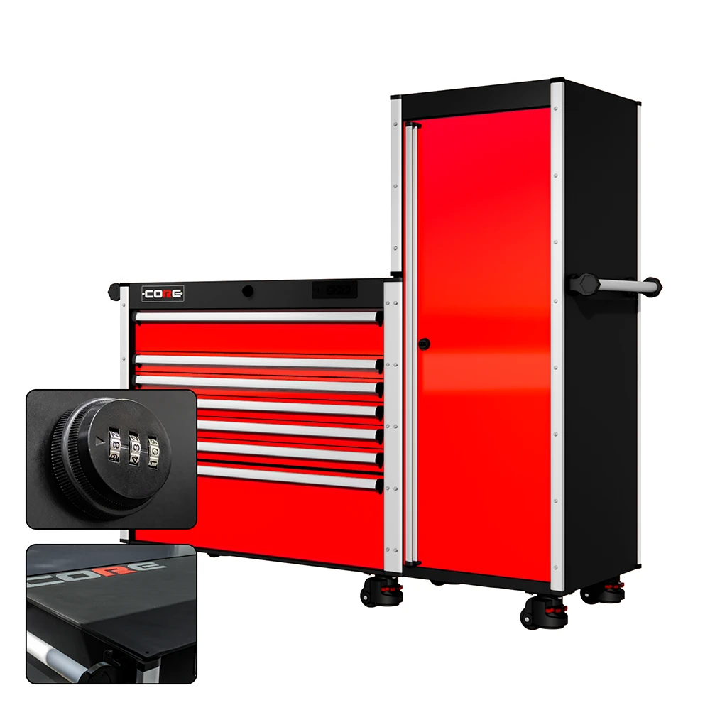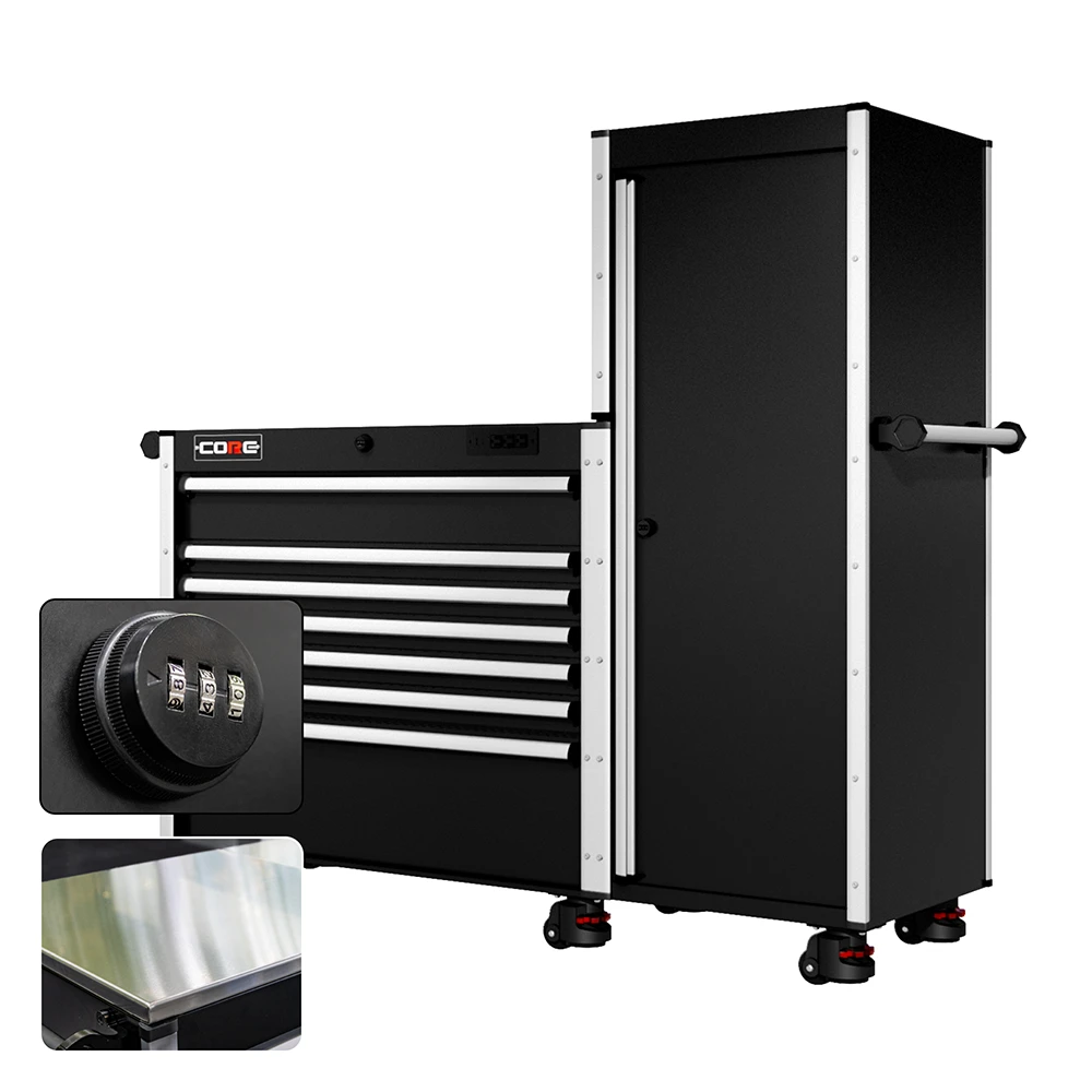 66 Series – 7 Drawers And Tall Locker – Silver Handles – Foot Casters