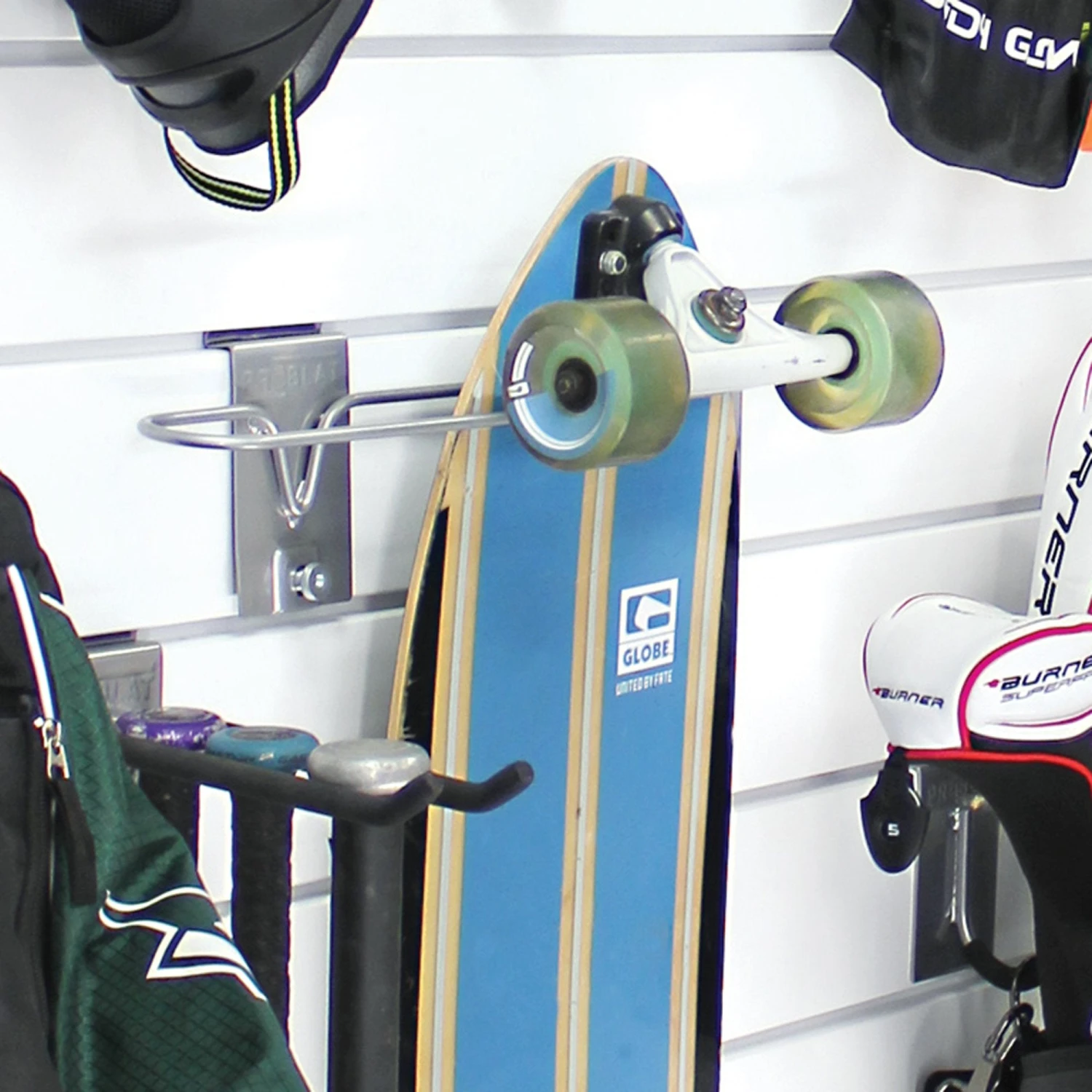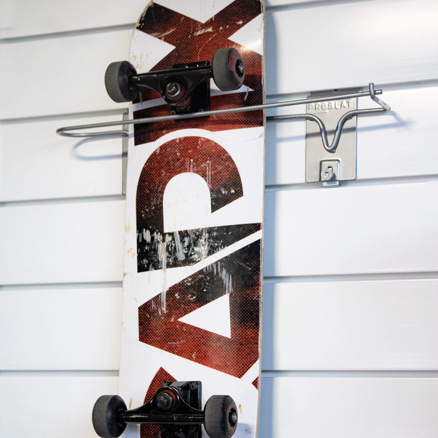 Snowboard? Skateboard? Whatever you’re into this season, our unique rack will keep your board from getting buried in the garage.