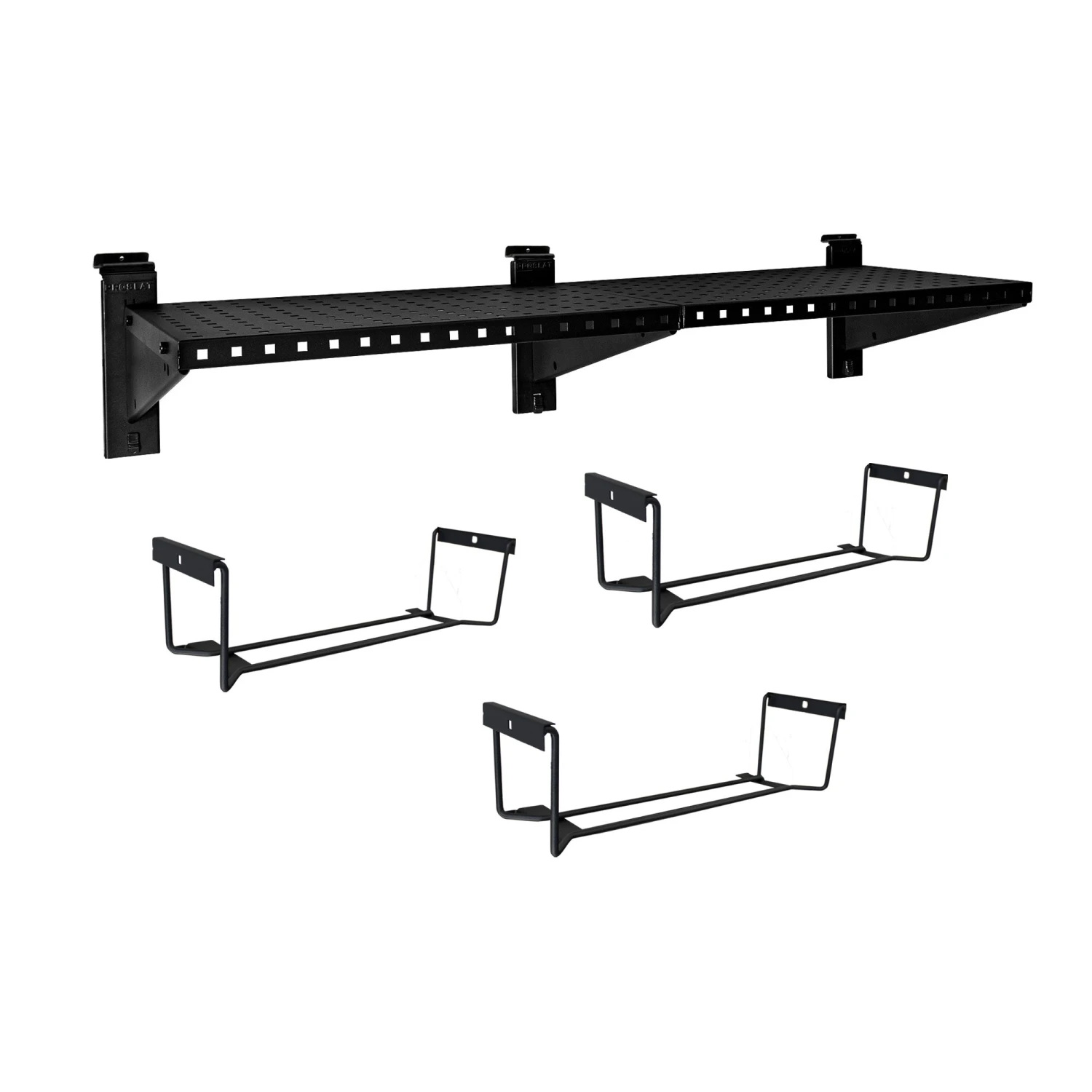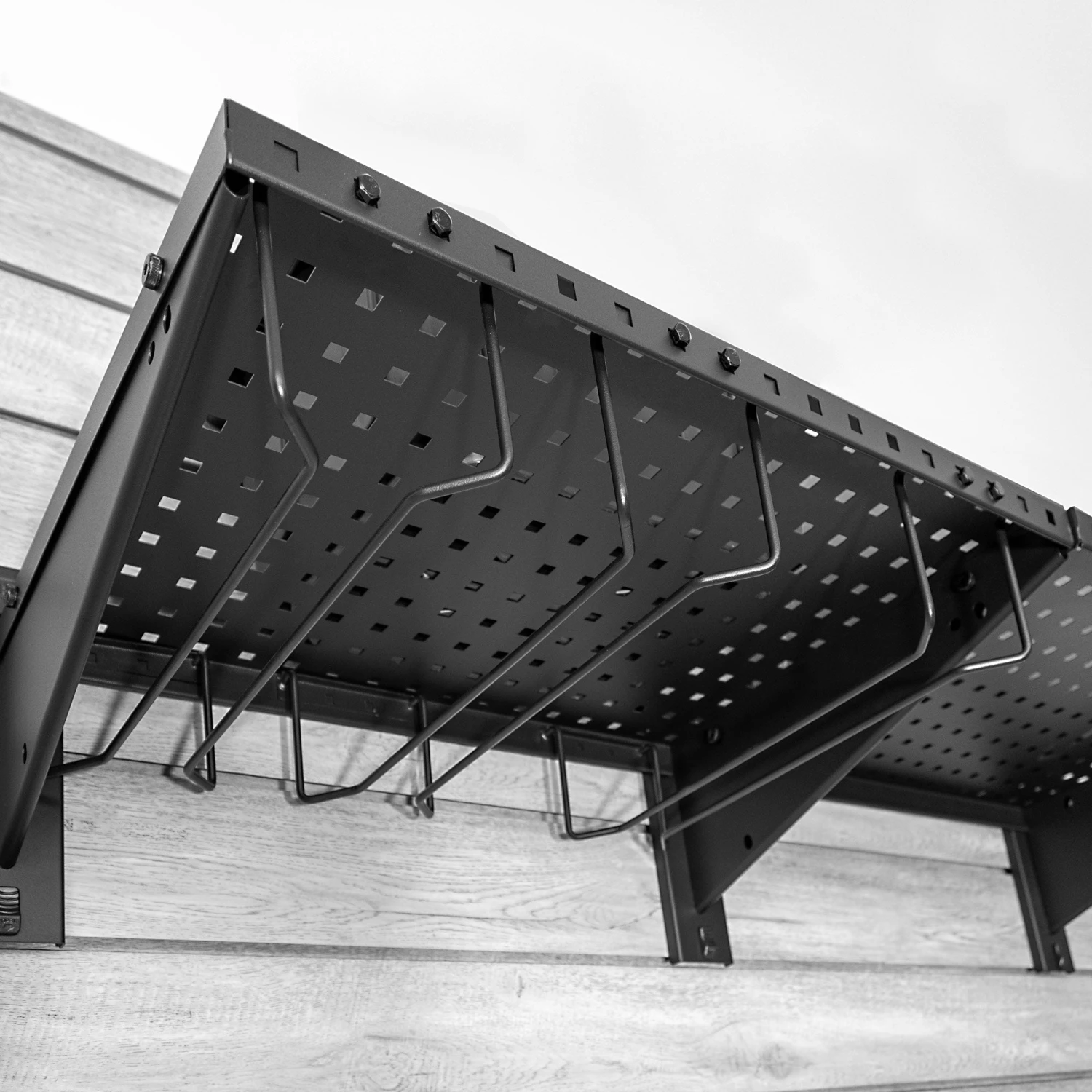 Maximize your workspace by utilizing the underside of your STEALTH metal shelves with our tool storage shelf attachment brackets. Designed to securely hold drills and other power tools, this attachment keeps your tools organized and easily accessible, enhancing efficiency in your workspace.Â
