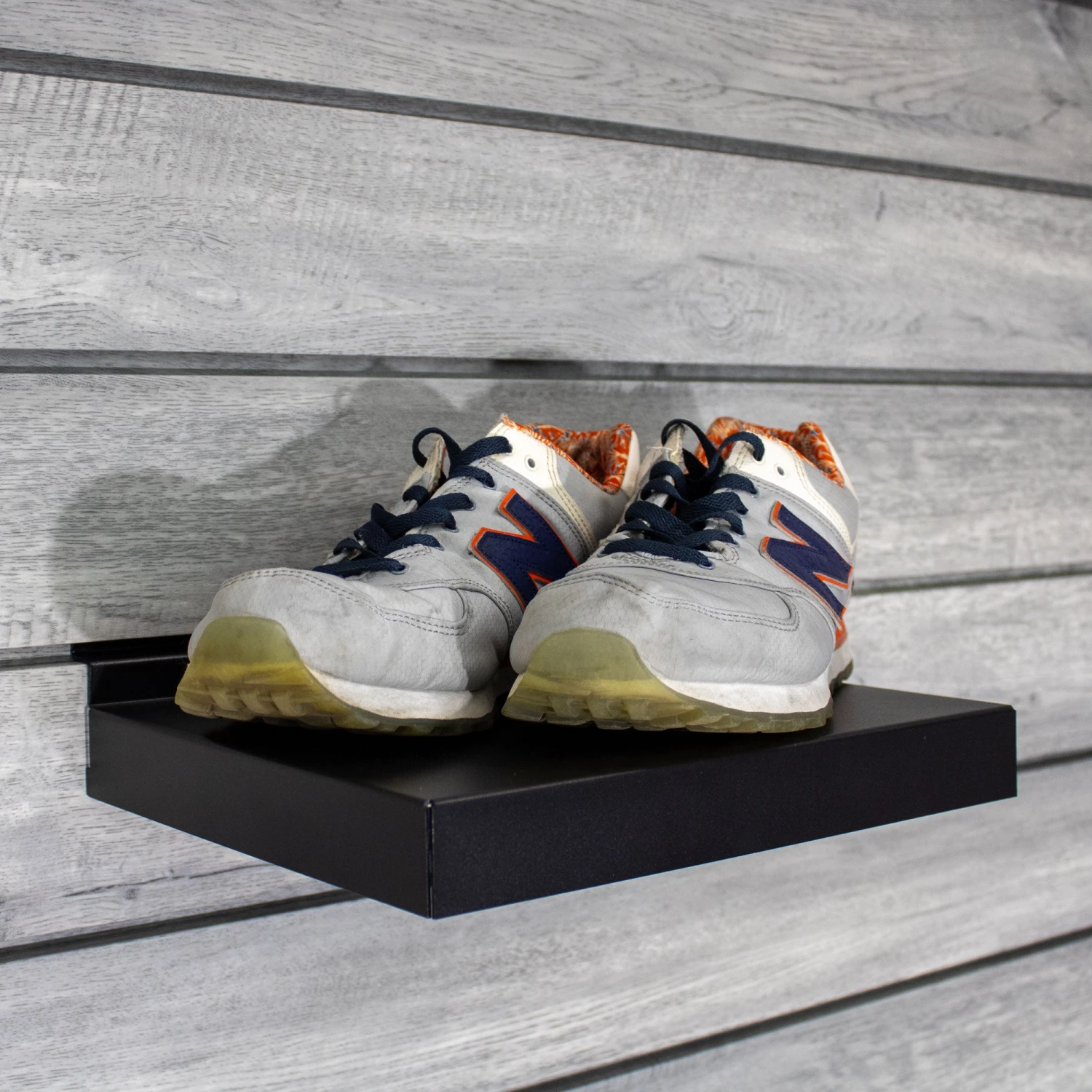 Our latest STEALTH accessories come in a sleek black finish with upgraded hook designs for enhanced functionality. Showcase your products with our versatile Slatwall Display Shelf, designed to fit seamlessly into your existing slatwall system. Ideal for displaying shoes, merchandise, or collectibles, this shelf offers a sleek and functional solution for your display needs.