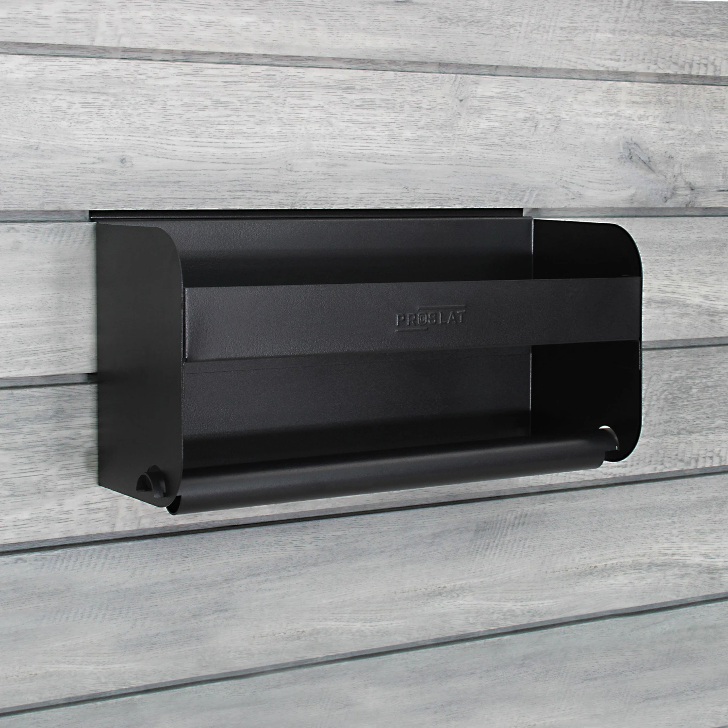 Our latest STEALTH accessories come in a sleek black finish with upgraded hook designs for enhanced functionality. Maximize your garage or workspace efficiency with this versatile Shelf & Paper Towel Holder. The top shelf offers a sturdy shelf to store frequently used items like cleaners, sprays, or small tools, keeping them within easy reach. Below, the rod accommodates standard paper towel rolls or 16-inch shop towel rolls, making cleanup and organization a breeze.