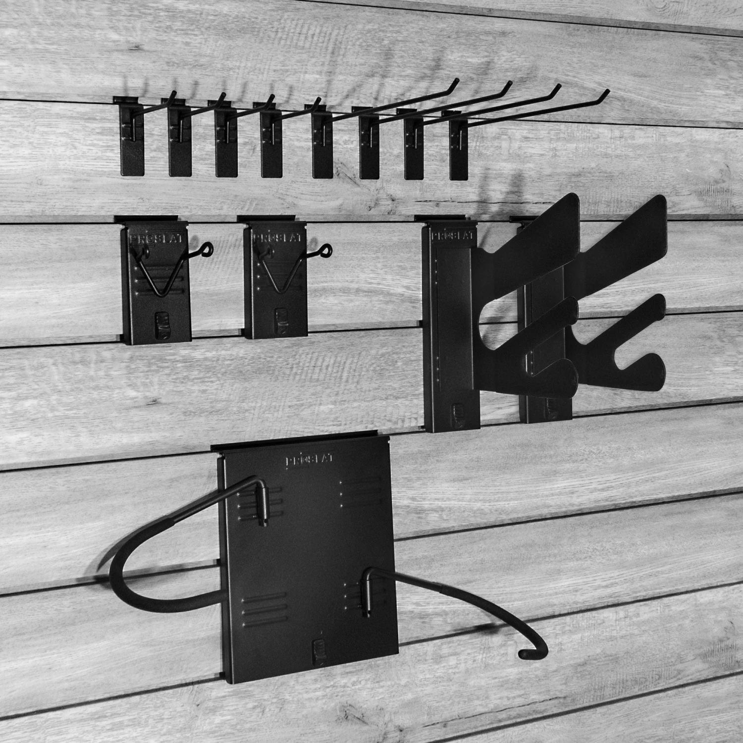 Our latest STEALTH accessories come in a sleek black finish with upgraded hook designs for enhanced functionality. The Proslat sports hook kit will organize any athletic equipment. This efficient kit can hang bicycles, golf/hockey bags, fishing rods, snowboards or skateboards, plus a few universal single hooks for any other accessories you may have.