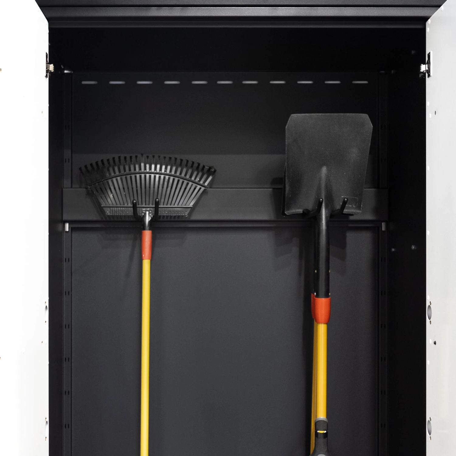 The Utility hook is perfect for keeping bulky objects hidden away. Get extra storage for items such as rakes, brooms, hockey and golf bags. Available for the 40 inch tall cabinet only.
